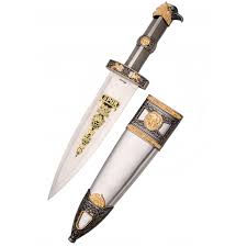 Discover the majesty of the Roman dagger with this stunning piece made of high-quality stainless steel . Measuring 35 cm in length, this dagger not only stands out for its functionality, but also for its stunning design. The dagger features an exquisitely detailed metal sheath, which perfectly complements the finely crafted handle. Ideal for passionate collectors and history enthusiasts alike, this Roman dagger combines precision craftsmanship with captivating aesthetics. Whether displayed in your collection or as a top-class decorative tool, this Roman dagger will be an eye-catcher.