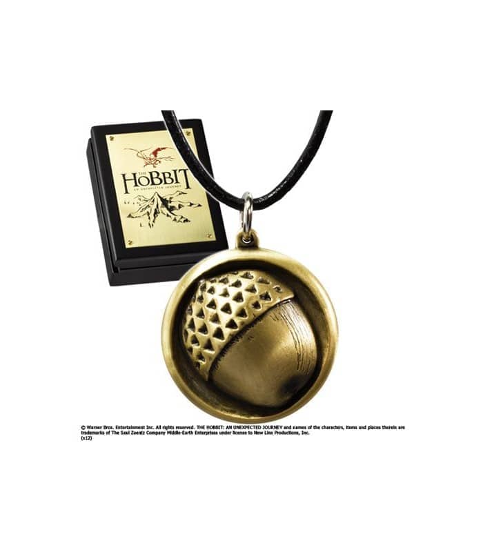 Solid pendant with acorn motif on the face and "Bilbo Baggins" engraved on the reverse Includes leather strap with secure lobster clasp closure