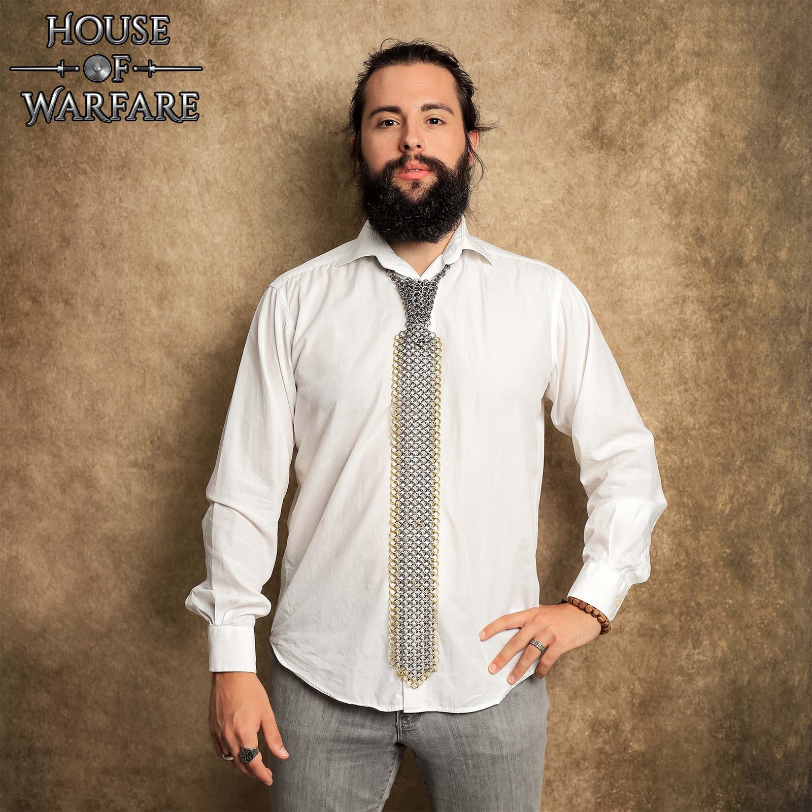 How about adding that missing bit of medieval chivalry to your current tuxedo? Our "Knight's Tuxedo" chainmail tie is the perfect start! It's handcrafted with solid steel and brass rings and is extremely lightweight, perfect for hours of wear!