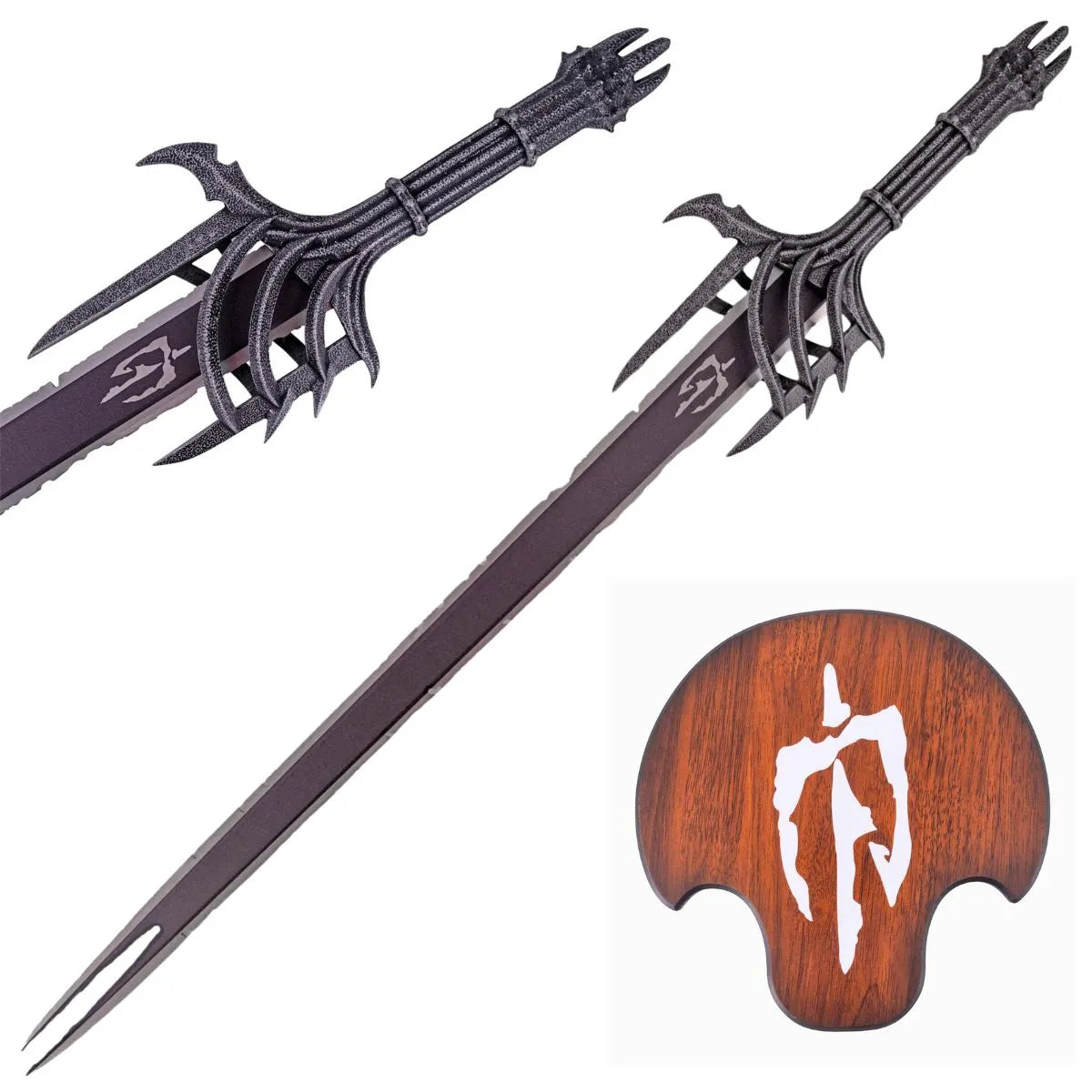 Metal guard and pommel: Crafted with an antique nickel finish, giving an aged, realistic look worthy of the Lord of Mordor.