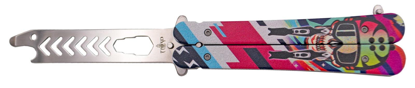 SKI Third K2474 multi-purpose 420 steel blade, mirror-gloss finish, 9.4 cm, aluminum handle with 3D Skull print. Ref. K2474