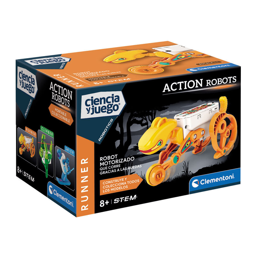Edad: +8 años. kit de construcción de un robot corredor. un kit para dar tus primeros pasos en la ciencia de la robótica. el kit contiene un módulo electrónico y una serie de componentes para construir un robot capaz de correr. la construcción del robot permite estimular la destreza manual y el ingenio. el manual ilustrado ayuda a construir el robot en pocos y sencillos pasos. diseño moderno y atractivo.