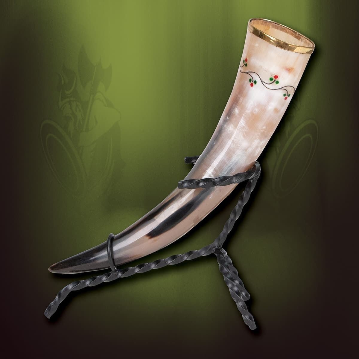 The Twisted Iron Drinking Horn Stand is a stylish and functional piece, designed to impressively display any Viking horn in your collection. This stand combines rustic design with the durability of wrought iron, making it the perfect addition for those looking to add an authentic touch to their Viking themed celebrations or displays.