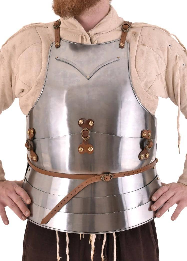 This 15th century style Milanese armour consists of chest and back armour as well as belly covers.