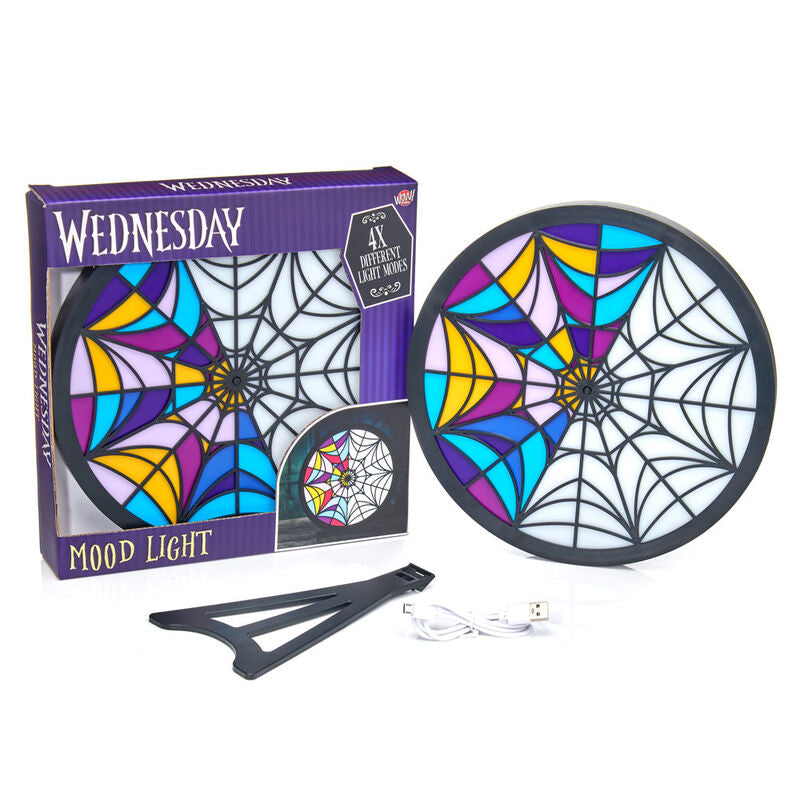 Wednesday. This beautiful stained glass window lights up at the touch of a button. 4 different lighting modes to choose from.