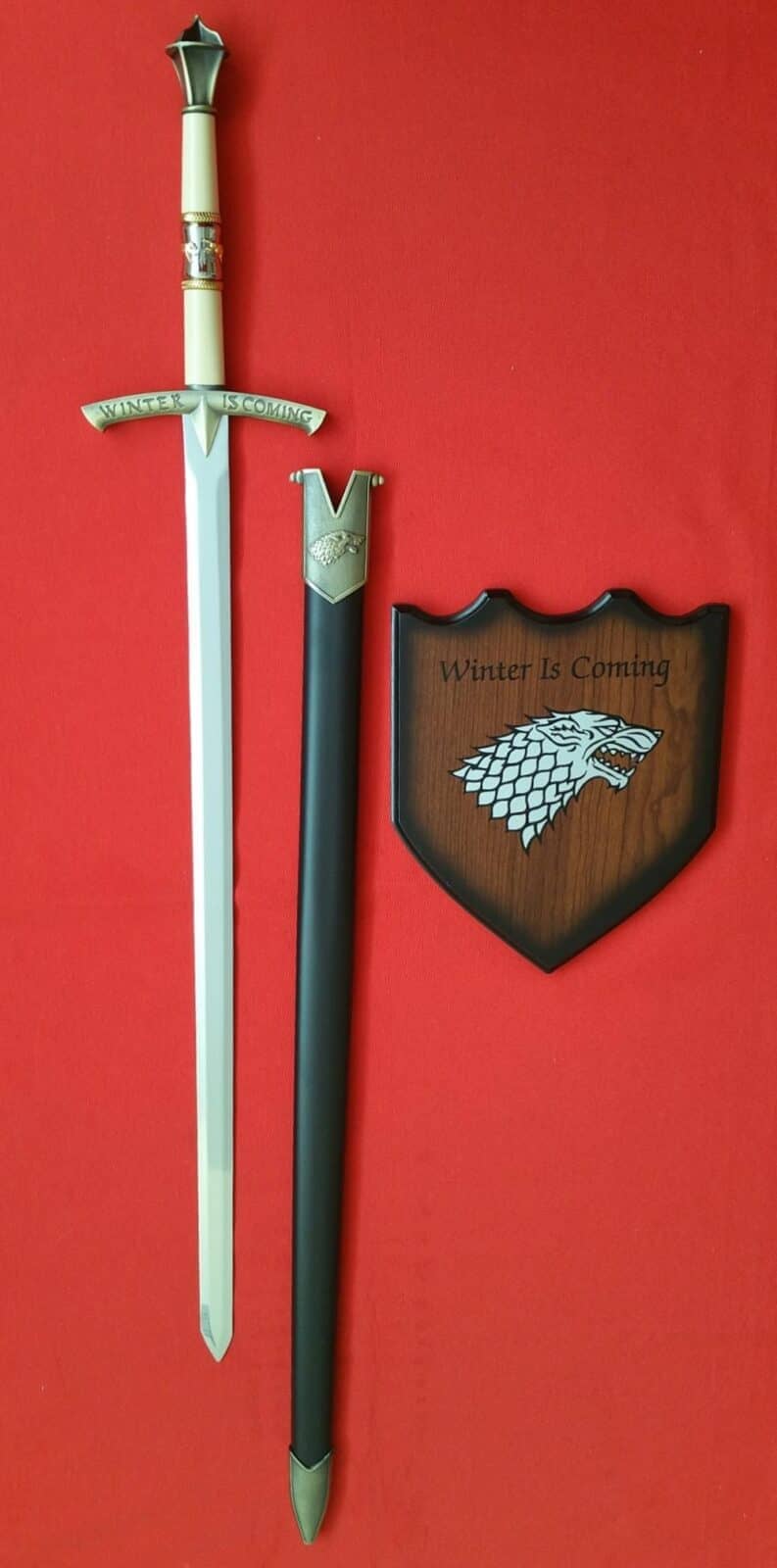 The blade of the sword is made of high-quality stainless steel, which ensures durability and strength. In addition, its metal hilt is sturdy and adds a touch of style to the sword. The phrase Winter is Coming, one of the most famous mottos of the series, is engraved on the hilt, which gives the sword a distinctive touch.