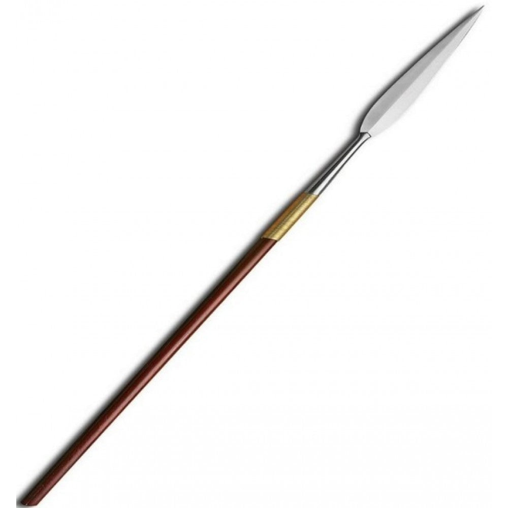 Accompanied by a leather shield, this spear is the perfect size for hand-to-hand combat. It has a high carbon tempered steel blade. Wooden handle reinforced with brass wire. The Zulu "Iklwa" is a must have for history buffs or collectors of military weapons.