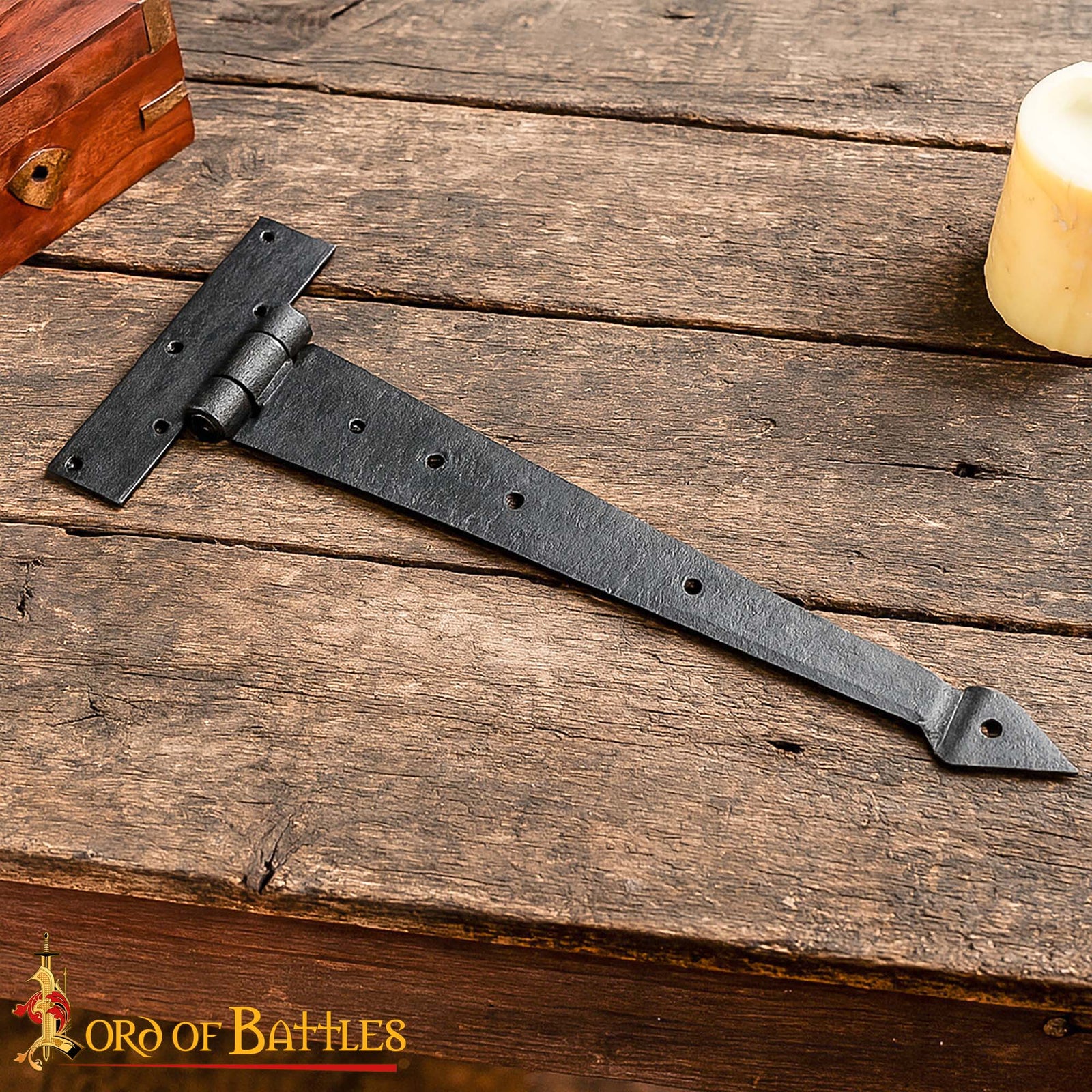 esta bisagra de puerta tiene el tamaño perfecto para muebles medievales, puertas o proyectos de restauración. El hierro está cuidadosamente recubierto de aceite para protegerlo contra la corrosión durante el almacenamiento y el transporte. Simplemente limpie para revelar el acabado forjado, o deje el aceite para una protección adicional.