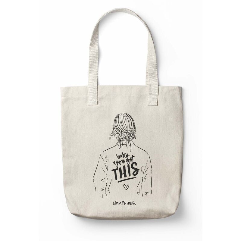 Size: 37x39x10cm. Features two wide handles for comfortable shoulder carrying. 100% recycled cotton.
