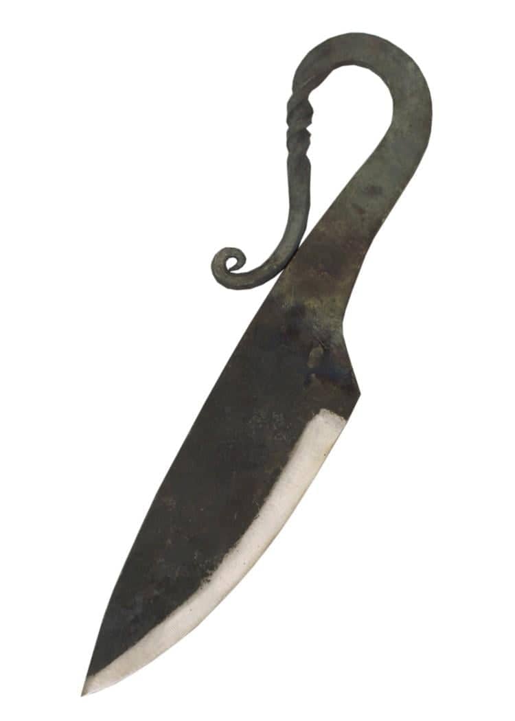 Antique hand forged medieval knife with suede sheath Typical shape of an early medieval utility knife.