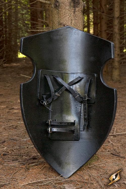SAVAGE SAFEGUARD Taking inspiration from the semi-curved, kite-shaped shields used by the Normans of the Early Middle Ages, the Maurauder Kite Shield works just as well for a goblin raider or brutal orc from a high fantasy realm as it does for a battle-worn European knight from the 9th century or a raiding Viking. Crafted from durable closed-cell foam and coated with latex, this shield is more than ready for LARP battle. Hand-sculpted and painted with realistic details such as scratches and nicks, this shield features a dark matte metallic finish and riveted metal trim. A stylized cross appears in the center. Keep your grip on this Savage Shield with the three-position grip and adjustable buckle straps found on the inner side. HISTORY Also known as a "kite" shield, originally from the 10th-12th centuries. Associated with the Normans, who were the first to use this style of shield widely. Made from splinter-free wood such as alder, fir, poplar or basswood.Shipping and returns