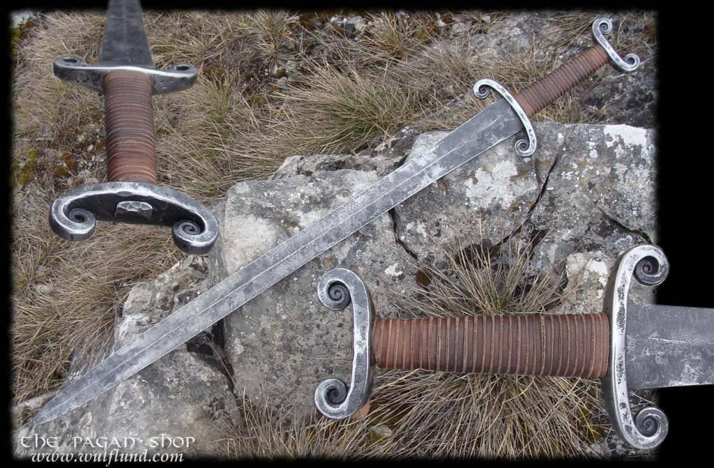 HAND -HAMMERED FORGED SWORD inspired by Celtic anthropomorphic swords , blunted and built for historical fencing. Brenus was a Celtic chieftain who captured Rome.