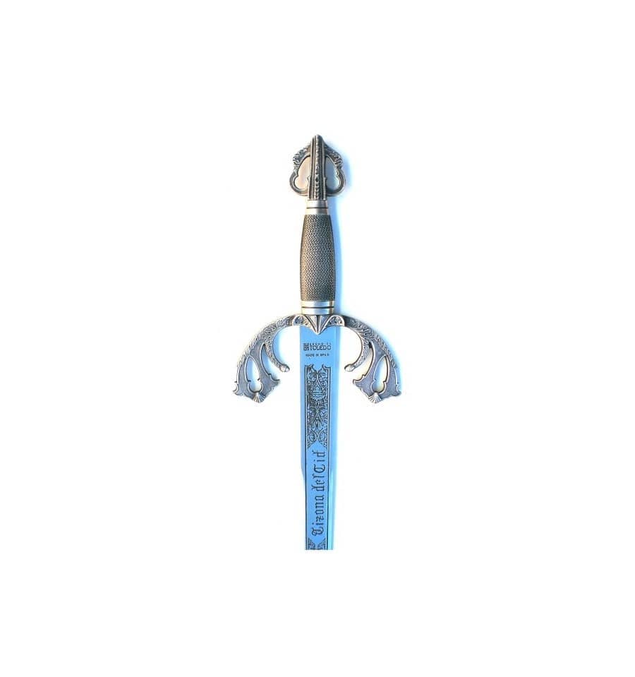 This Tizona sword of El Cid is a true work of art in high quality stainless steel, expertly crafted in Toledo, Spain. The faithful design of the original sword used by the famous Spanish hero, El Cid Campeador, can be seen in every detail, including the hilt and the curved blade.