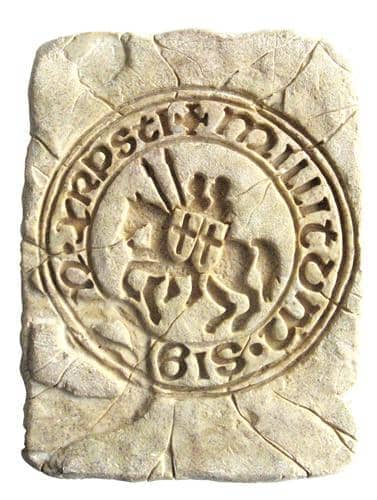 With an inscription in Latin that says “sigilum militum Xpisti” (Seal of the militia of Christ)