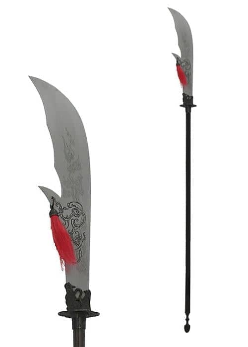 The Quandao (as guandao, Guan Dao or Kwan Tao known) is named after its creator, the great general Guan Yu, and was originally a powerful weapon of war, tipping the scales at over 45kg. Over time however, these Polearm evolved into a martial arts weapon with significantly less weight (the one presented here by Hanwei Hsu Quandao weighs approximately 2.5kg).