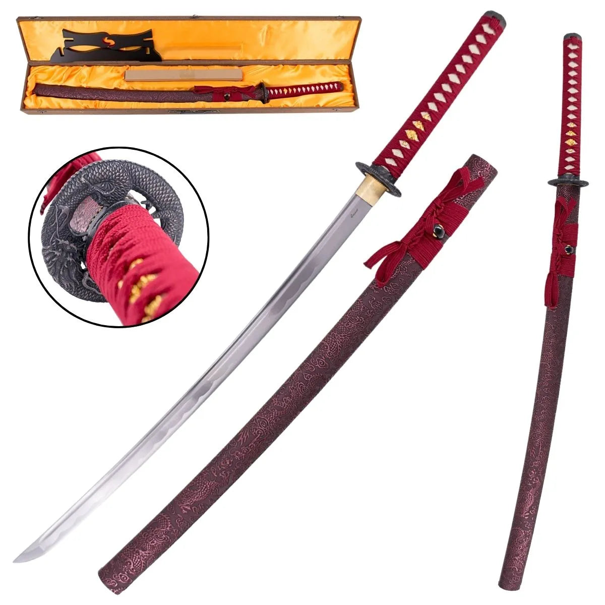 - Attractive Aesthetics : The vibrant red finish of the blade adds a unique and modern touch to this katana, making it stand out in any collection or display.