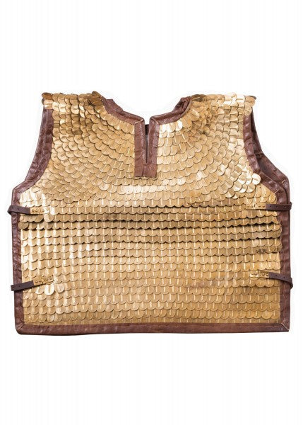 The Lorica Squamata is tied at the side and neck using leather straps.