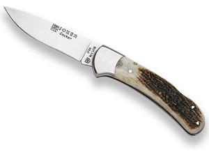 JOKER COCKER HUNTING KNIFE WITH DEER ANTLER HANDLES, STAINLESS STEEL BOLSTER AND 9 CM BLADE NC47