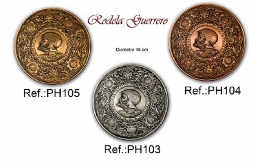 Impressive round shield or warrior's round shield. It is from the Marto House of Toledo, so it is a quality piece. It is made of highly resistant hybrid polyurethane or polyresin and hand painted. It is a non-functional decorative piece. It can be used as a decoration. Choose gold, silver or bronze color. Measures 45 cm in diameter PRICE PER UNIT