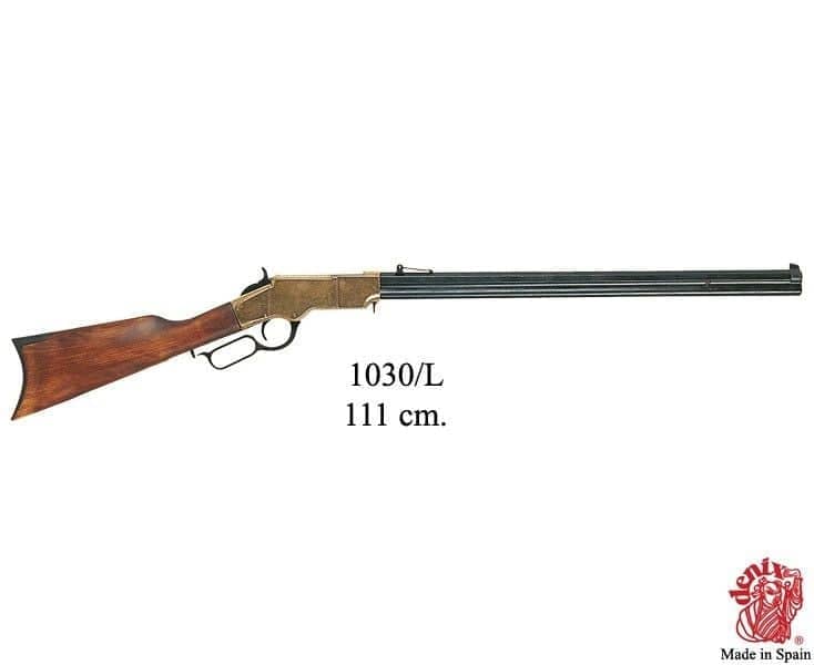 Impressive replica of a Henry Rifle with an octagonal barrel, Civil War, USA 1860. It is made of wood and metal, made in Spain and measures 111 cm.