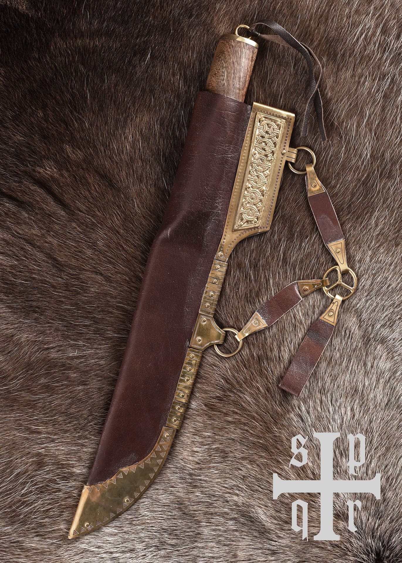 - Leather and brass sheath with hanger The