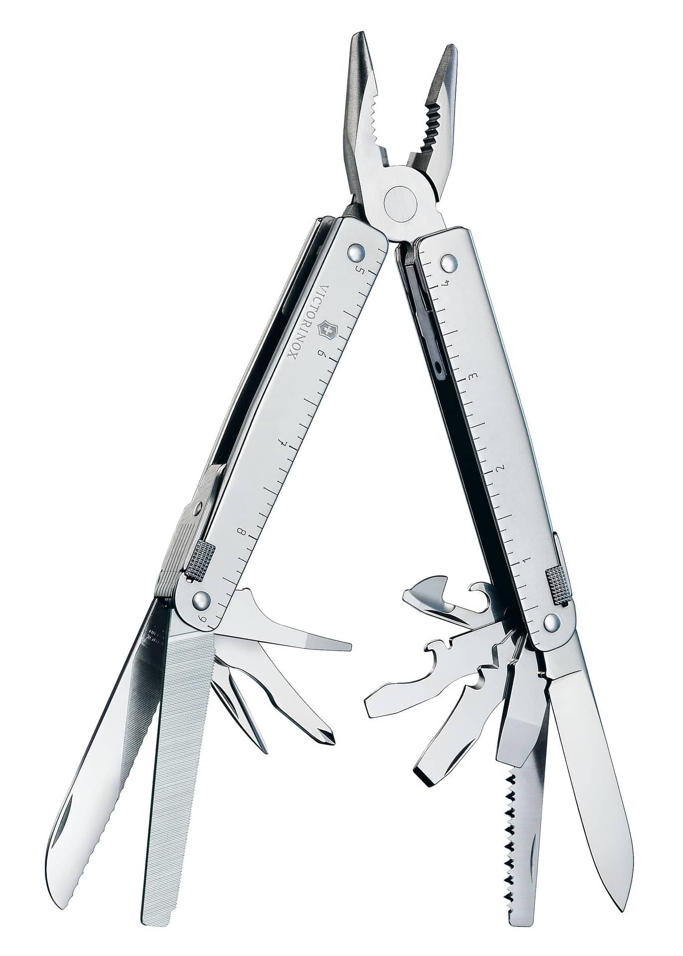 There really isn't anything this tool doesn't have. From box opener to combination pliers, it's the ideal tool for a super user with a total of 26 functions .