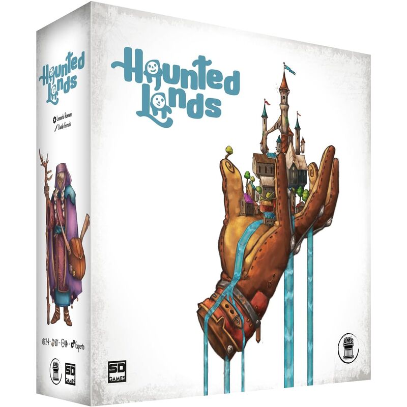 Haunted Lands. Language: Spanish. Age: 14+. Number of players: 2-4. Game duration: 60 minutes. Explore new lands in search of resources that will help your community grow. Your ancestors traveled to distant lands to find a suitable place to start over. You are perceptive, with the gift of seeing beyond the veil of reality. A large number of beautifully designed silkscreened wooden pawns, tokens, dice, cubes, and cards.