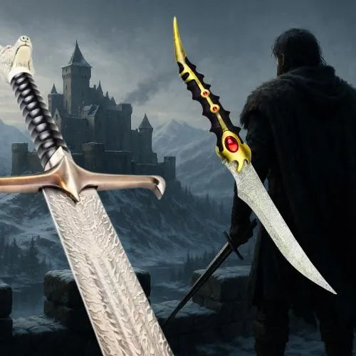 Empuña la majestuosa Garra de Jon Nieve, siente la nobleza de Agonía y el acero ancestral de Hielo, o descubre la letal elegancia de las dagas valyrias que sellaron destinos. Forjadas con precisión, estas réplicas combinan belleza y realismo para honrar la épica de George R. R. Martin y las inolvidables batallas de Poniente.