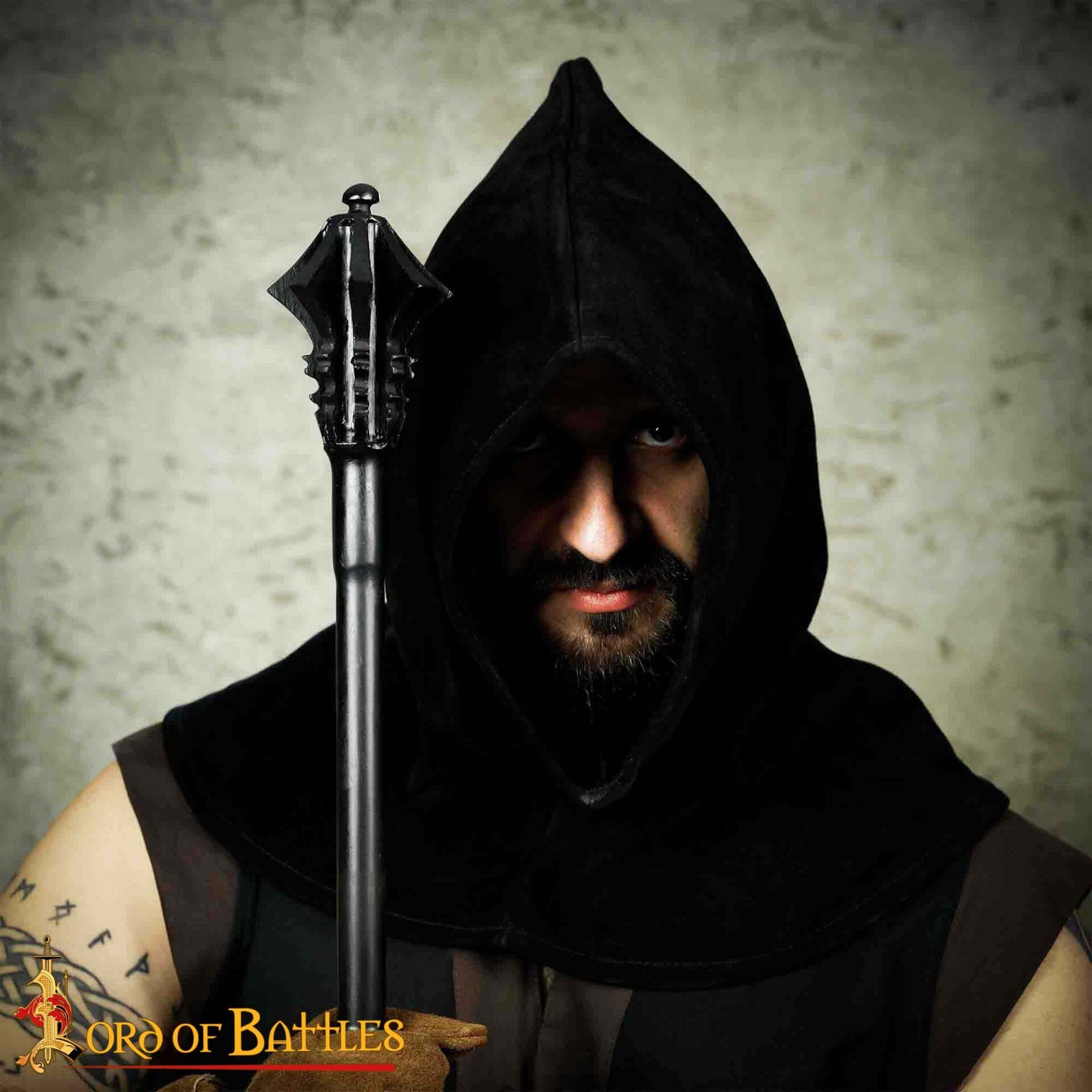 Historically inspired by garments used for concealment, warmth, and protection, this hood combines functional design with bold visual impact. Whether portraying a medieval mercenary, an outlaw, or simply dressing in a rugged period style, this versatile hood is a distinctive wardrobe accessory.
