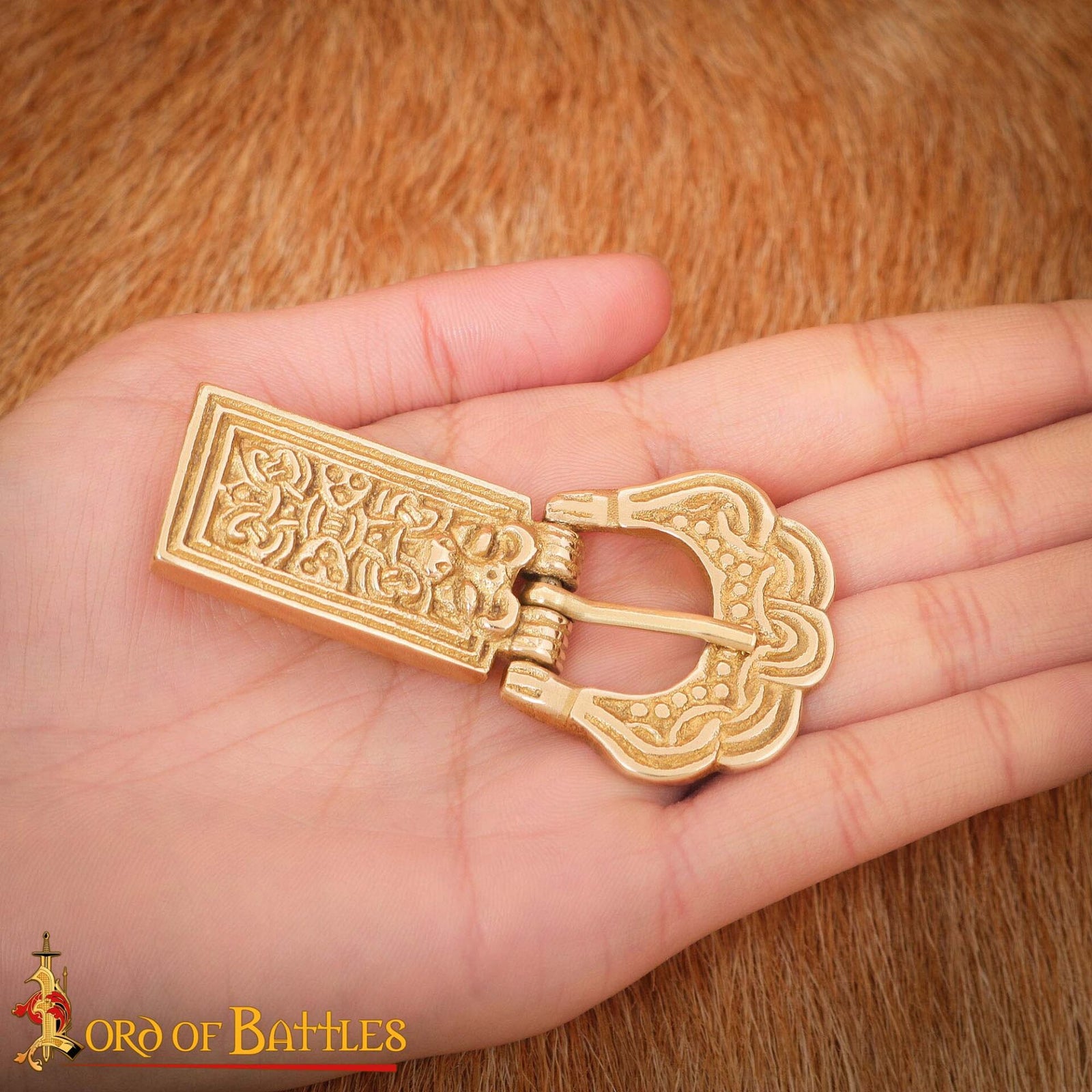 Medieval Brass Belt Buckle - Engraved Historical Accessory - Solid Brass