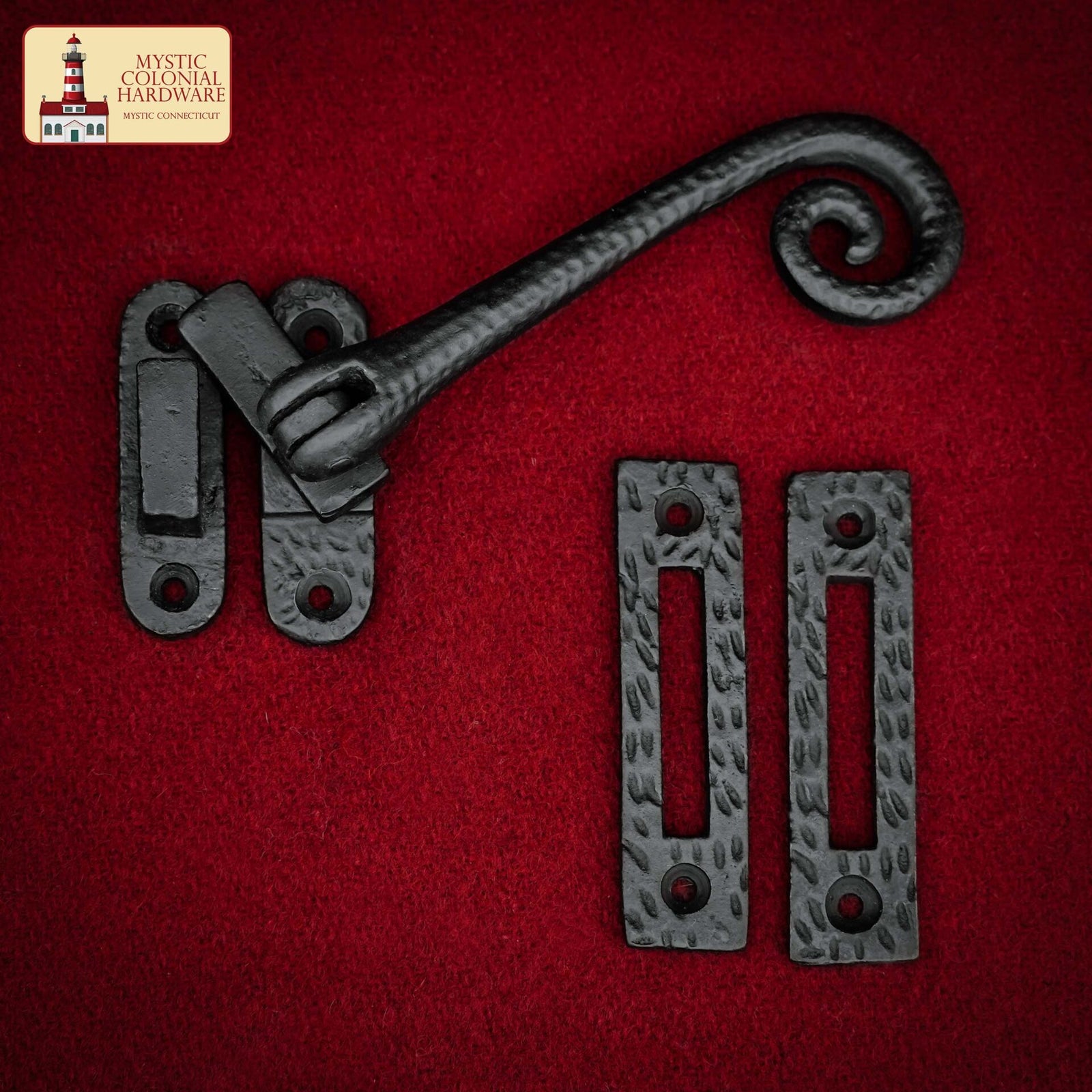 Elegant Black Cast Iron Reversible Curly Casement Window Latch, Size: 5.4" x 2.2"