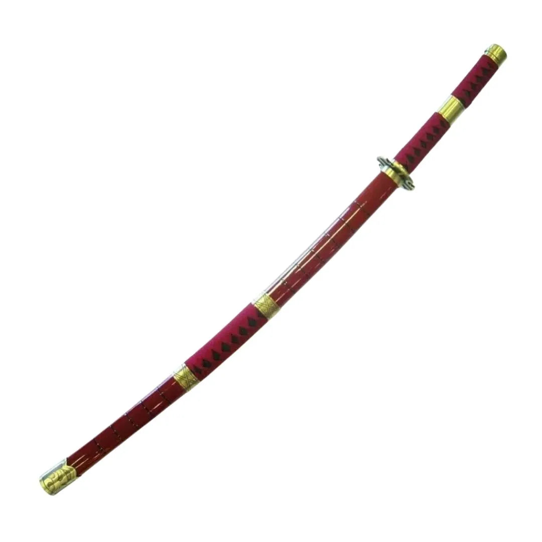 Get your hands on Zoro's iconic Sandai Kitetsu , the most famous cursed katana from One Piece , now in a high-quality, ornamental replica. Made of carbon steel with a blunt blade, metal tsuba, and red-lacquered wood accents with gold trim, it's a must-have piece for your collection.