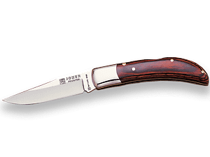 Handmade Sports Knife With Lock, Stainless Steel Ferrule, Red Wood Handles And 7.5 Cm Blade.