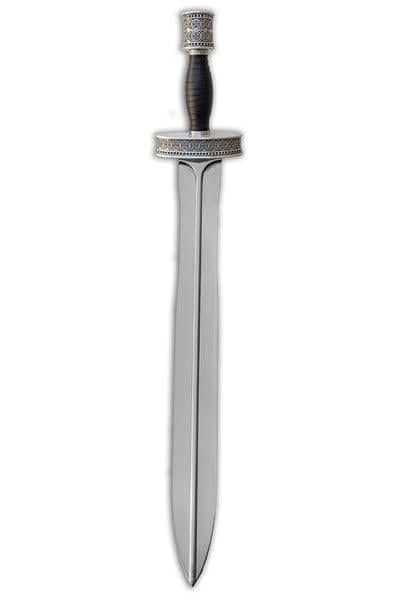 El puño de piel negro es excepcionalmente cómodo y proporciona un agarre seguro y antideslizante. La guardia circular es una característica distintiva de la espada griega y no decepciona en esta arma. Además, el pomo está detalladamente labrado para una mayor elegancia y sofisticación.