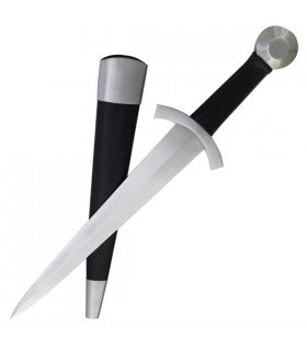 Grandes dagas fueron portadas por grandes caballeros y hombres de armas. Aunque también fueron utilizadas para las tareas del campo, su uso principal estaba en el campo de batalla donde ocupaba la última línea de defensa. Esta forma clásica tiene un pomo con bola de acero y guarda curvada baja. La empuñadura es de madera forrada de cuero y la amplia, que sujeta firmemente la hoja, es de acero al carbono templado.