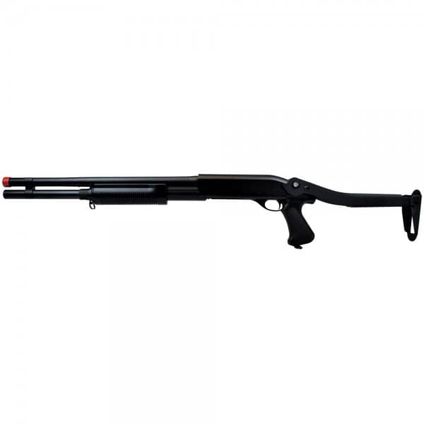 La Escopeta 352 Larga Full Metal Negra (CM352LM) tiene una longitud de 79 a 105 cm y un peso de 2370 g. Además, viene con un speedloader incluido para facilitar la recarga de tu arma.