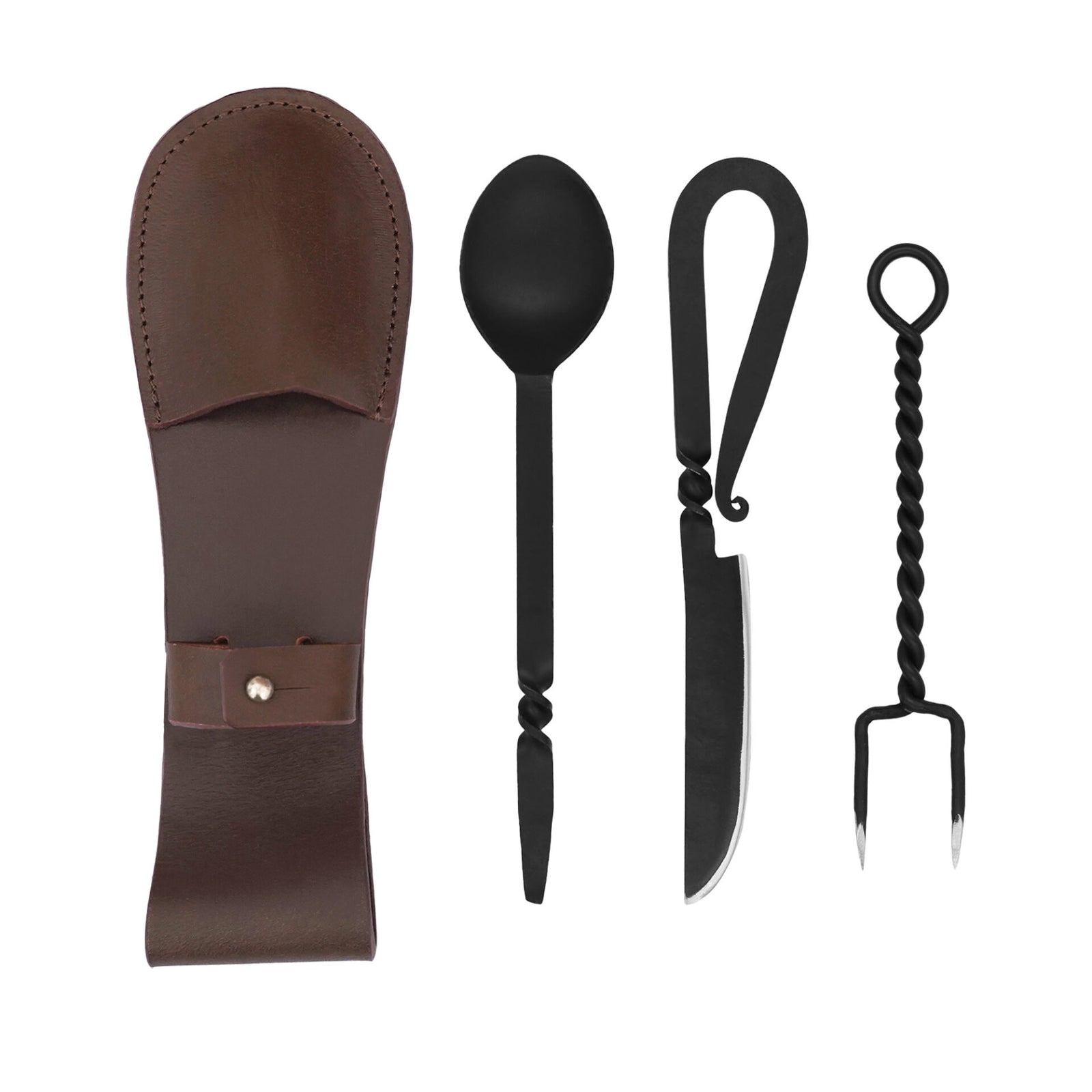 Juego de Cubiertos Rústicos de Acero Inoxidable Funcionales para Campamento