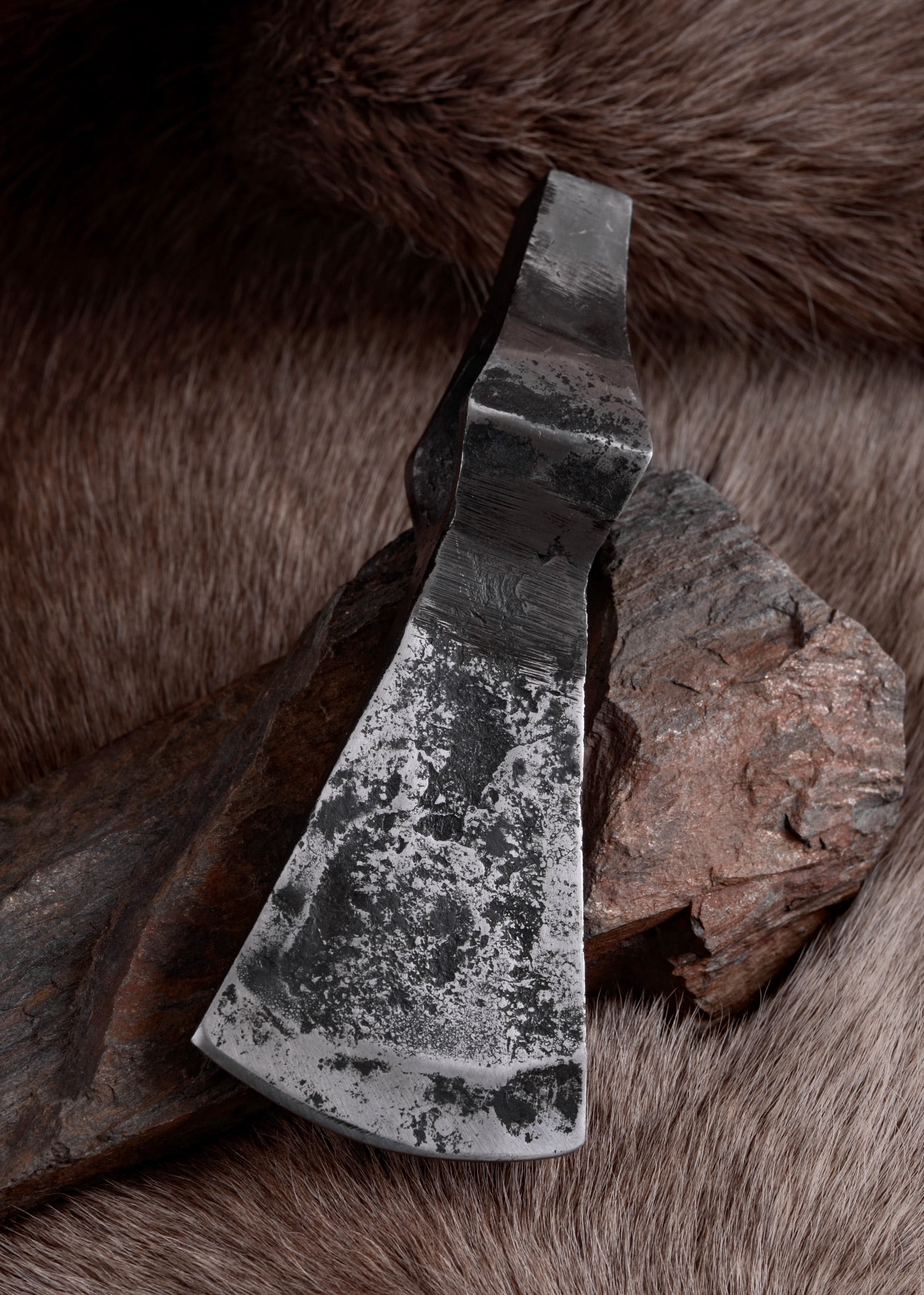 Esta Hoja de Hacha con Martillo, Roma es una réplica auténtica de las hachas medievales tempranas utilizadas por vikingos y eslavos. Forjada a mano en acero al carbono de alta calidad, esta hoja está diseñada específicamente para recreaciones de combate. El filo es romo y los bordes están redondeados para minimizar los daños en las armas y armaduras enemigas, lo que la convierte en una opción ideal para eventos de recreación histórica. El acabado rústico sin pulir le otorga un aspecto genuino que refleja el diseño de las hachas de la Edad Media.