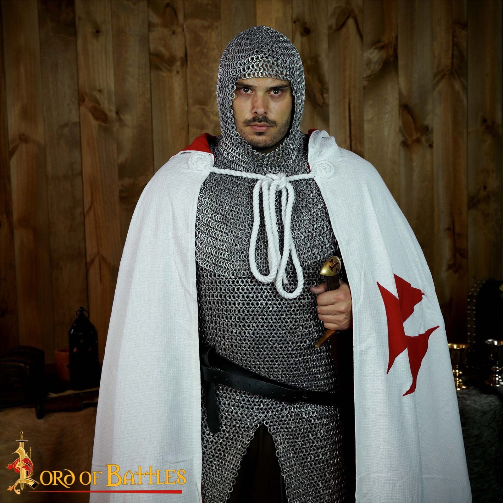 Adéntrate en el mundo de los cruzados medievales con esta capa con capucha Crusader, confeccionada en resistente lienzo de algodón y con la inconfundible cruz Pattee roja, símbolo de fe, valor y sacrificio. Esta reproducción histórica toma su diseño de los Caballeros Templarios y otras órdenes guerreras cristianas de los siglos XI al XIII, que llevaban este tipo de capas en sus campañas por Europa y Tierra Santa.