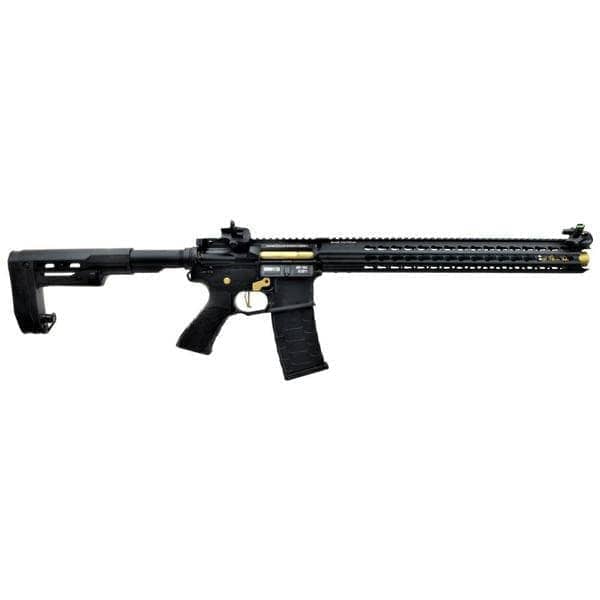 Con una revisión de 300 tiros, este fusil eléctrico es bastante confiable y brinda una experiencia de disparo suave. Su soplo eléctrico hacia atrás y hacia los lados garantiza una gran precisión en el disparo. Además, su stock RS-2 con lugares Flip-Up Escamoteables le da un aspecto táctico y moderno al fusil.