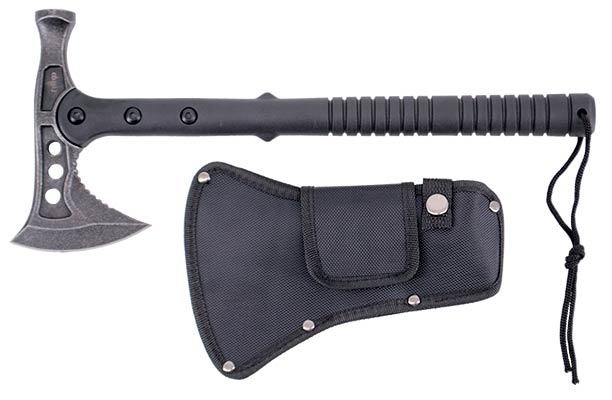 Hacha Third M9001N de acero 420 acabado a la piedra oscura de 38 cm total, mango de ABS negro. Con funda de nylon. Ref. M9001N