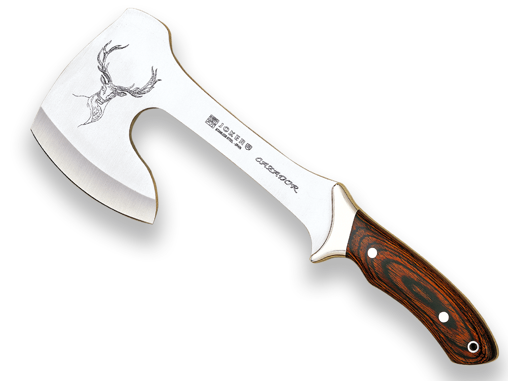 Hacha Montera Joker Cazador, Acero 420, Virola Inox, Mango Madera Roja Prensada. HR00