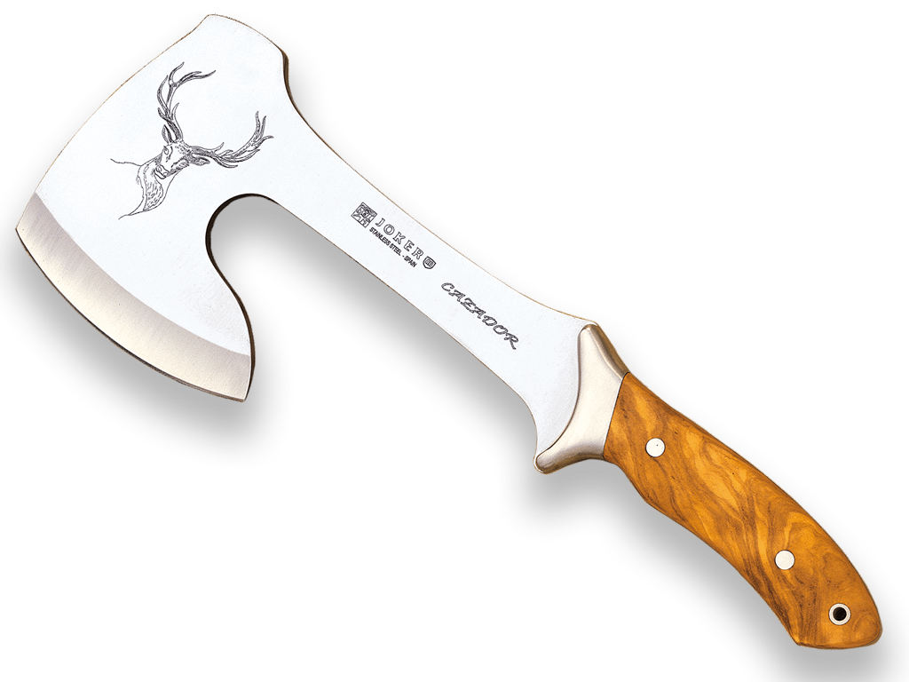 HACHA MONTERA JOKER CAZADOR, ACERO 420, VIROLA INOX, PUÑO DE OLIVO HO00 - Espadas y Más