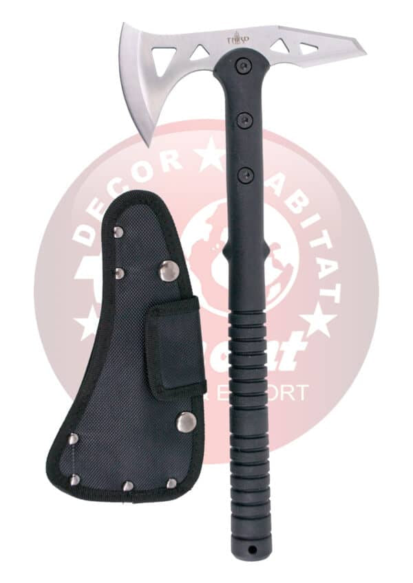 Hacha Third S4100-1 de acero 420 acabado satinado de 37 cm total, mango de ABS negro. Con funda de nylon.