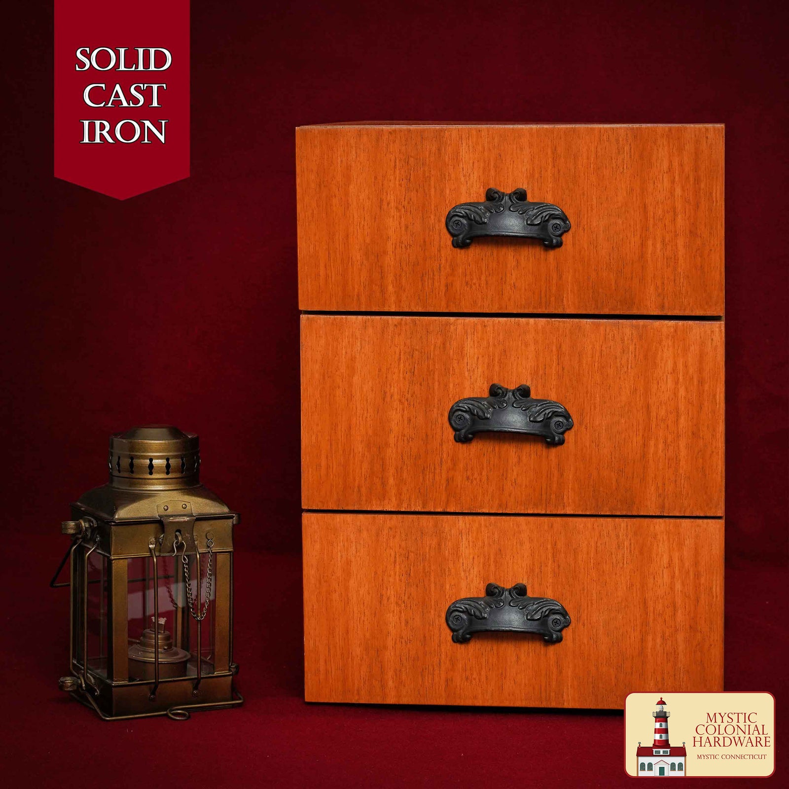 Juego de 4 Tiradores de Hierro Fundido Rústico: Ideal para Ambientes Victorianos, Coloniales, Retro, Steampunk, Góticos, Barrocos y Medievales, (10.3x5) Cm - Imagen 3