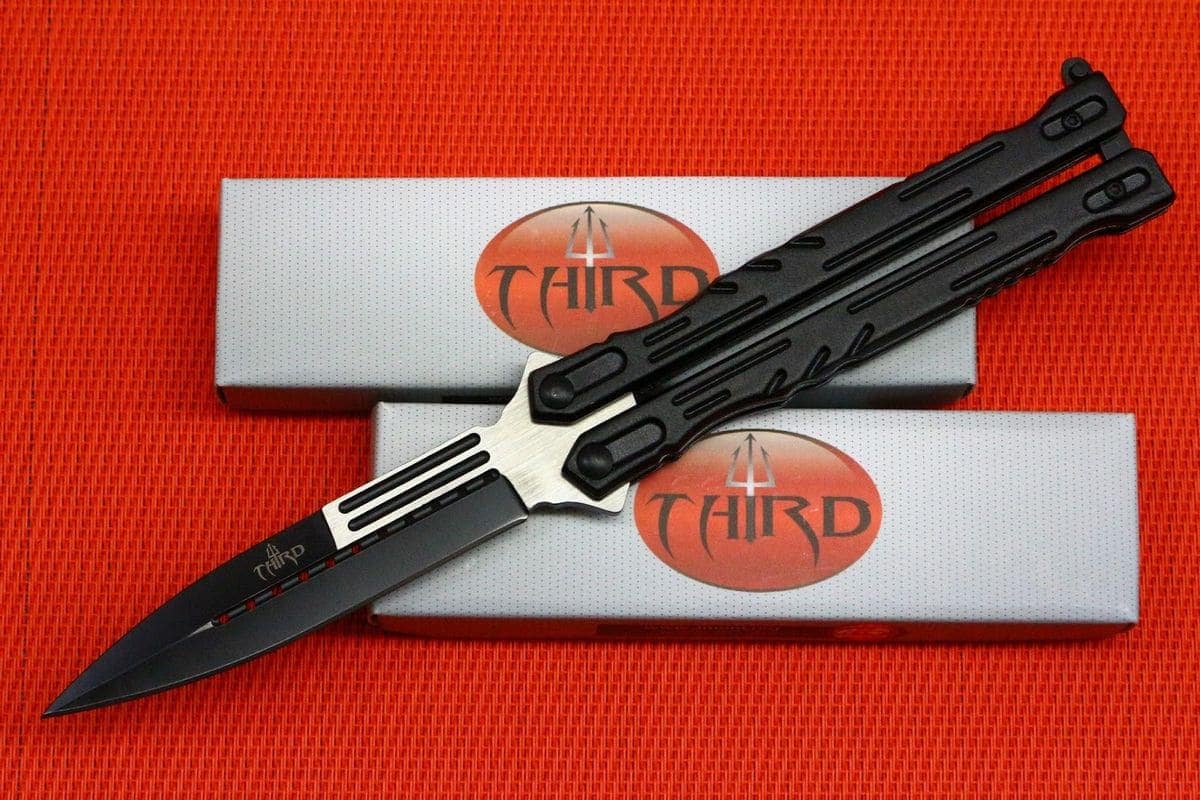 Impresionante navaja abanico o mariposa de la marca third. Es de acero inoxidable de gran calidad con mango de aluminio.