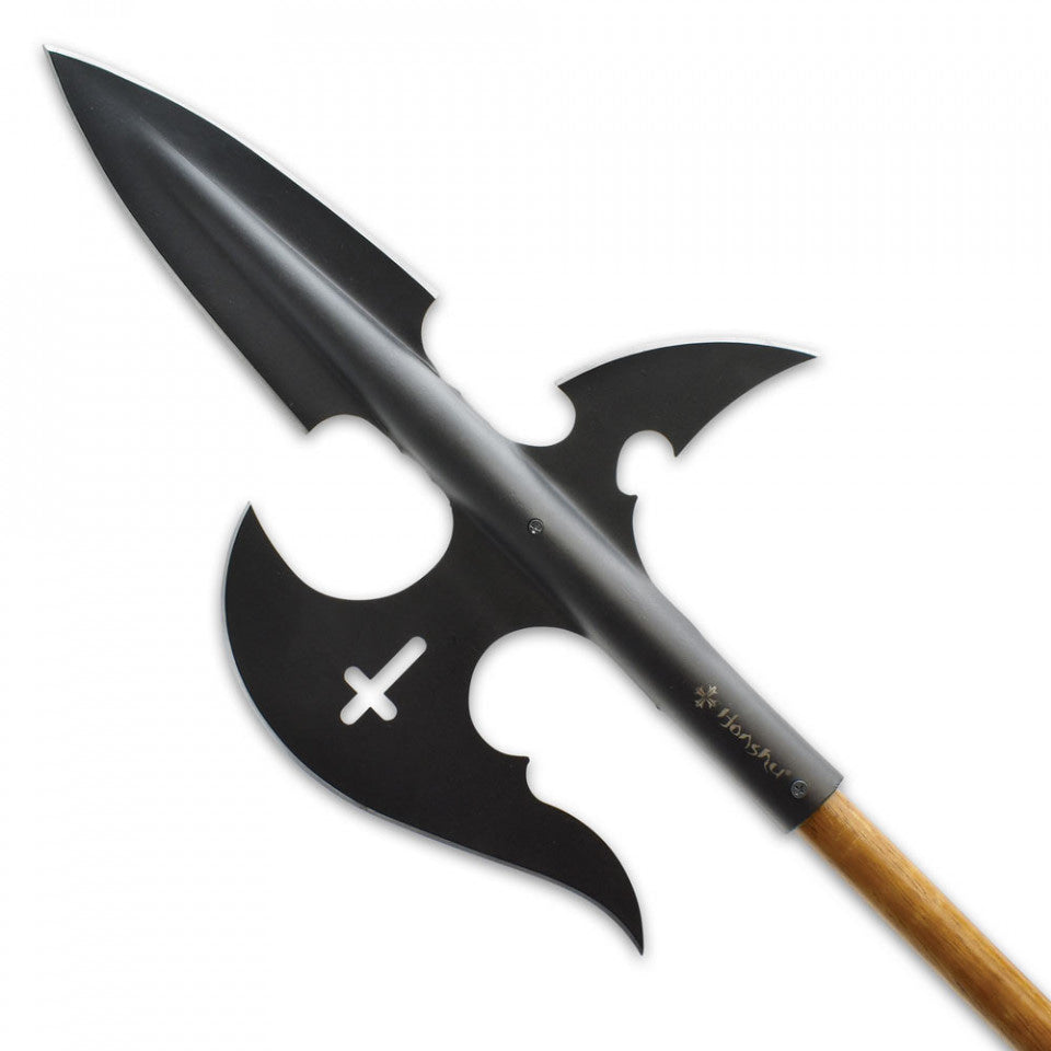 ¡La popular línea Honshu de United Cutlery ofrece elegancia simple y moderna con un bocado! Inspirada en el arma principal de los ejércitos suizos de los siglos XIV y XV, la lanza de alabarda está lista para la guerra moderna. La punta de lanza de 50 cm x 35 cm está mecanizada en acero con alto contenido de carbono de 65Mn con un revestimiento de óxido negro no reflectante y cuchillas afiladas. La jabalina histórica se adapta a cualquier empuñadura de madera estándar de 3.1 cm de ancho (no incluida).