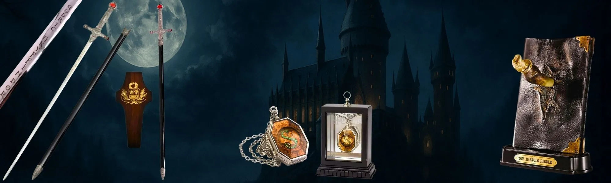 Y muchos otros productos como: cálices, soportes, lechuza Hedwig, figuras coleccionables, sellos de lacre para pergaminos, figuras de criaturas mágicas y donde encontrarlas, estatuas oficiales de la película, espada de Gryffindor, diarios de Tom Riddle y mas... ¡ muchisimos productos mas! Deja salir tu pasión por una de las mejores sagas de todos los tiempos. ¡Bienvenidos a Espadas y Más!