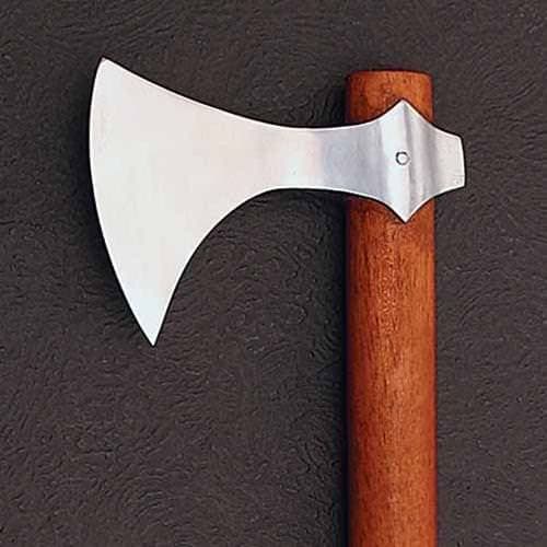 La mayoría de ellos estarían familiarizados con el impresionante Hacha Danesa, de hoja enorme hoja, a veces de más de un pie de ancho. Pero las hachas más pequeñas eran más populares para todo tipo de trabajo como para cortar ramas de los árboles. Podían lanzarse si era necesario, pero eran más útiles en el combate cuerpo a cuerpo con o sin escudo. Hoja fabricada en acero de alto carbono. No es sólo una elegante réplica, es un elegante hacha por derecho propio.