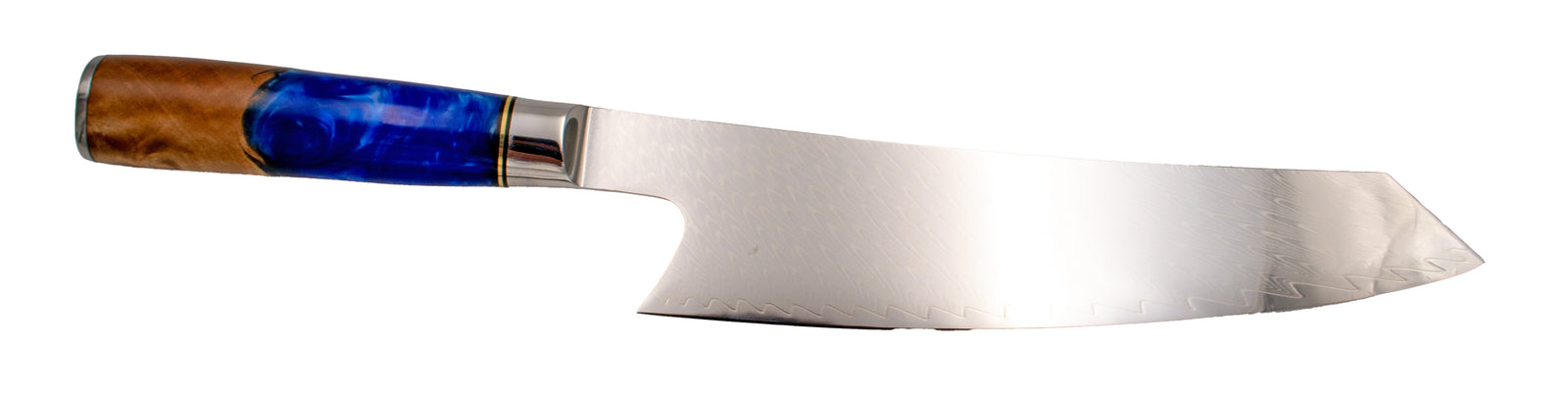 Cuchillo de cocina Tramuntana modelo CD01 Kiritsuke hoja de acero de damasco VG10 de 67 capas de 23,4 cm, mango de madera estabilizada con epoxi, con caja de presentación. Artículo de importación. Ref. CD01